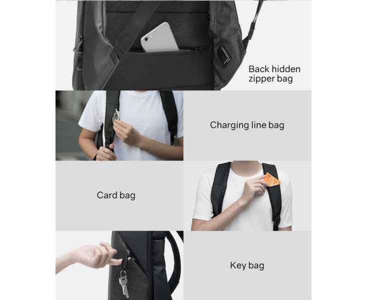Вместительный рюкзак для путешественников ClickPack из комбинации светло-серого и черного цветов, обладатель премий Good Design Award 2017, Red Dot Design Award 2018, iF Design Award 2018, International Design Excellence Award. Размер рюкзака 46х34х16 см, объем 17,3 л, вес 1040 гр. Сделан из прочного устойчивого к трению водоотталкивающего многослойного полиэстера, с двухслойной защитой от дождя и не требующего специального ухода. Конструкция достаточно жесткая, не деформируется. Детально продуманная организация отделений позволяет грамотно распределить вес. Самые тяжелые предметы располагаются ближе к спине, например, в отделении размером 35х27,5х3 см для ноутбука диагональю до 15,6” и в кармане размером 13,5х25 см для планшета диагональю до 10”. Благодаря плотным перегородкам и эластичным фиксаторам ноутбук и планшет надежно фиксируются и не перемещаются при ходьбе. Специальная анатомическая конструкция и вентилируемая мягкая спинка снижают нагрузку на плечи и спину, вес рюкзака воспринимается на 20-25% легче, чем при использовании стандартных моделей рюкзаков. Конструкция рюкзака позволяет раскрыть его на 180°, чтобы аккуратно уложить в рюкзак много различных предметов. Дополнительно в основном отделении расположены еще 8 карманов различного функционала. 6 открытых карманов под ручки и различные мелочи, 1 карман на молнии размером 9х16 см и карман на липучке для powerbank, в который приходит USB-кабель системы зарядки K EasyCharging, соединенный с USB-портом в борту на внешней стороне рюкзака для легкого подключения к смартфону. Рюкзак закрывается на двойную укрепленную молнию YKK, которую можно зафиксировать с помощью кодового замка TSA007 с функцией таможенного досмотра. Широкие и прочные лямки крепятся к небольшому тканевому борту, что позволяет рюкзаку как бы обхватывать вашу спину. В одном из бортов расположен USB-порт, а в другом - чехол для зонта или бутылки с водой, который при использовании фиксируется специальным креплением. На правой лямке рюкзака находится easy access карман размером 12х6 см на молнии, на левой - открытый карман 10х5 см. На внешней стороне рюкзака в стыке серого и черного цветов спрятался треугольный карман на молнии размером 16х9 см с застежкой фастекс для ключей, которая позволяет вам легко отстегнуть/пристегнуть ключи. На спинке рюкзака расположен внешний потайной карман размером 16х28 см на молнии. Для его защиты достаточно того, что он вплотную прилегает к вашей спине и вытащить что-то из него без снятия рюкзака невозможно. В дополнение к вышеперечисленным средствам защиты рюкзак ClickPack оснащен стальным тросом, которым можно обхватить неподвижный предмет и затем зафиксировать в кодовом замке. Сверху расположена ручка, за которую при необходимости удобно нести рюкзак в руках или закрепить на выдвижной ручке чемодана. На углах рюкзака размещены светоотражающие элементы, которые в темное время суток равномерно отсвечивают практически на 360° и делают вас заметными на расстоянии до 100 метров.