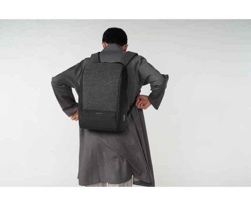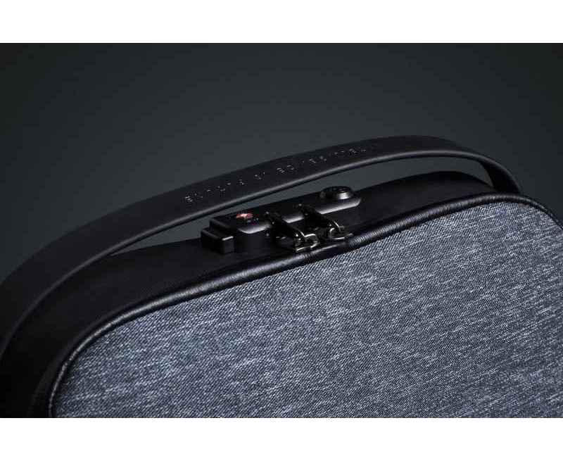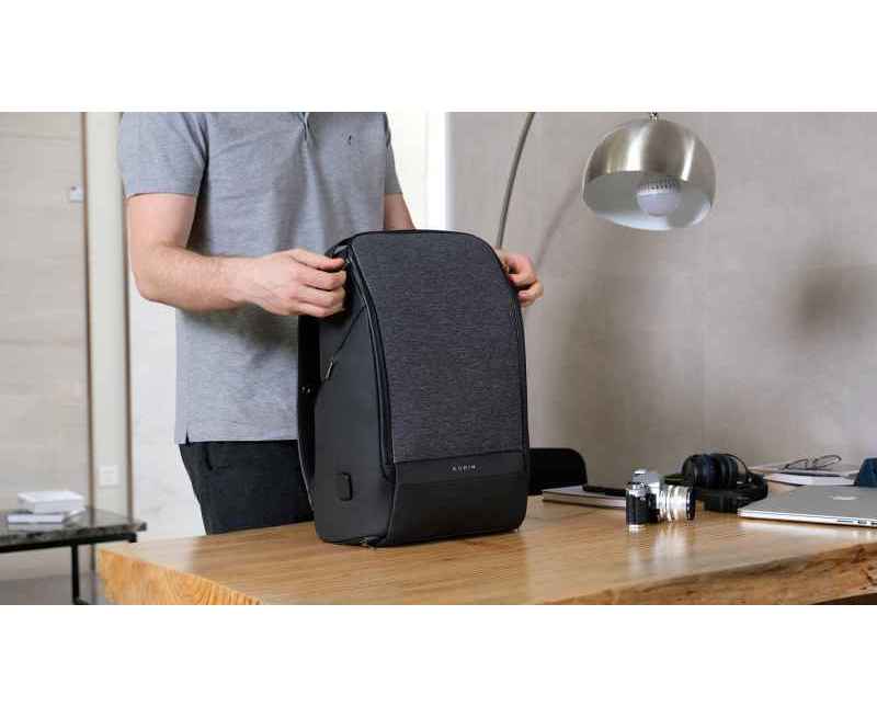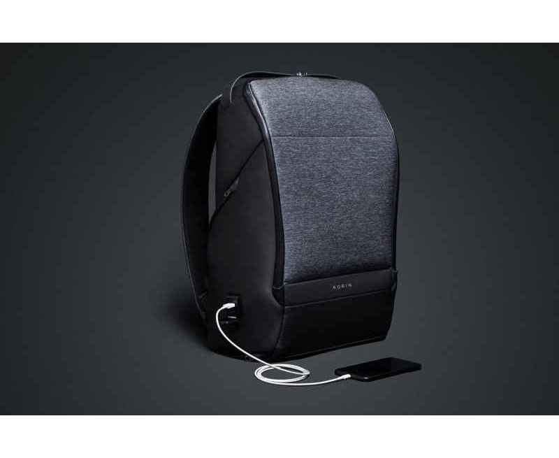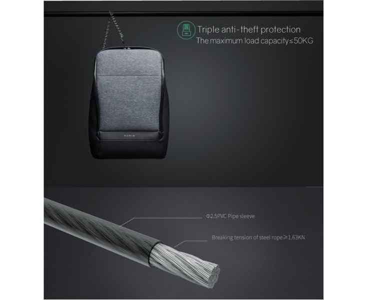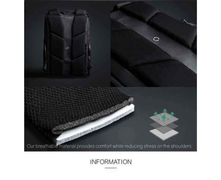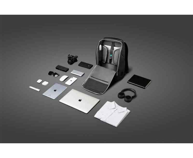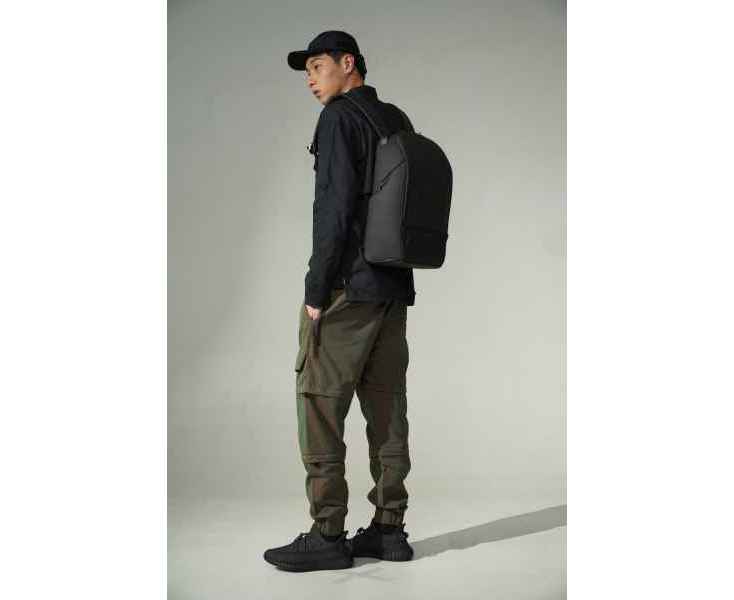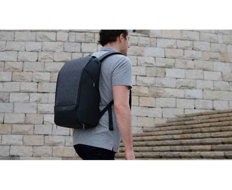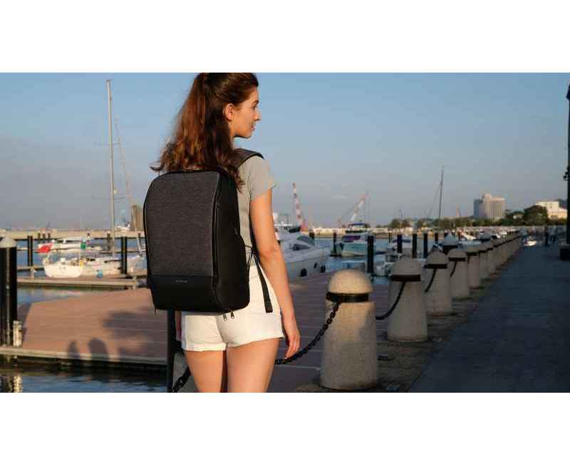 Вместительный водозащищенный рюкзак FlexPack Pro, обладатель премий iF Design Award 2019, Golden Pin Design Award, China Outstanding Industrial Design (CEID) Award, Governor Cup Industrial Design Excellence Award. Сделан из комбинации высокопрочных устойчивого к порезам и трению водоотталкивающих материалов: полиэстера и ткани многослойного плетения разных типов (нейлон, полиэстер и стекловолокно) черного цвета. Не требует специального ухода. Размер рюкзака 47х34х18 см, объем 18 л, вес 1330 гр. Рюкзак закрывается на водонепроницаемую молнию, которую можно зафиксировать с помощью кодового замка TSA007 с функцией таможенного досмотра. Конструкция рюкзака достаточно жесткая, не деформируется. Внутри рюкзака есть специальный карман, в который можно поместить powerbank, т к в него приходит USB-кабель (600 мм, 0,5-0,7 А, 5В), соединенный с портом на внешней стороне рюкзака для легкого подключения к смартфону. Это оригинальная запатентованная система зарядки K EasyCharging 1.0 с помощью USB-порта, расположенного в борту рюкзака, и кабеля, идущего к powerbank, что делает мобильную зарядку более удобной. По бокам рюкзака расположены 2 easy access кармана размером 22х12 см на водонепроницаемых молниях для термокружки, бутылки с водой, зонта, смартфона или других относительно небольших предметов. Детально продуманная организация отделений позволяет грамотно распределить вес. Самые тяжелые предметы располагаются ближе к спине, например, в отделении с мягким покрытием для ноутбука диагональю до 15,6”. Ноутбук надежно фиксируется и не перемещается при ходьбе. Внутри рюкзака есть 5 дополнительных карманов на молниях: 3 кармана 15-17х21-26 см и 2 боковых кармана с отделениями для телефона и мелочей 11,5х20 см. Специальная анатомическая конструкция вентилируемых мягких спинки и лямок и дополнительная поперечная лямка на магнитной застежке снижает нагрузку на плечи и спину, вес рюкзака воспринимается на 20-25% легче, чем при использовании стандартных моделей рюкзаков. На лямке специальная петля для очков или наушников. Сверху рюкзака есть удобная ручка из высококачественной прочной резины, за которую его можно нести или зафиксировать на ручке чемодана. Рюкзак оснащен стальным тросом, которым можно обхватить неподвижный предмет и затем зафиксировать в кодовом замке.