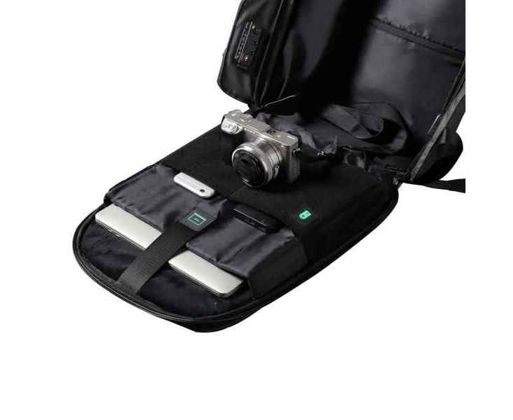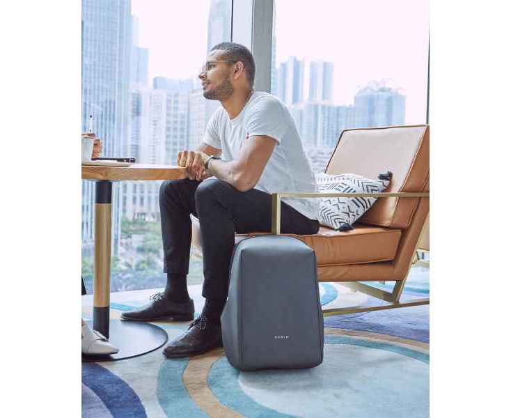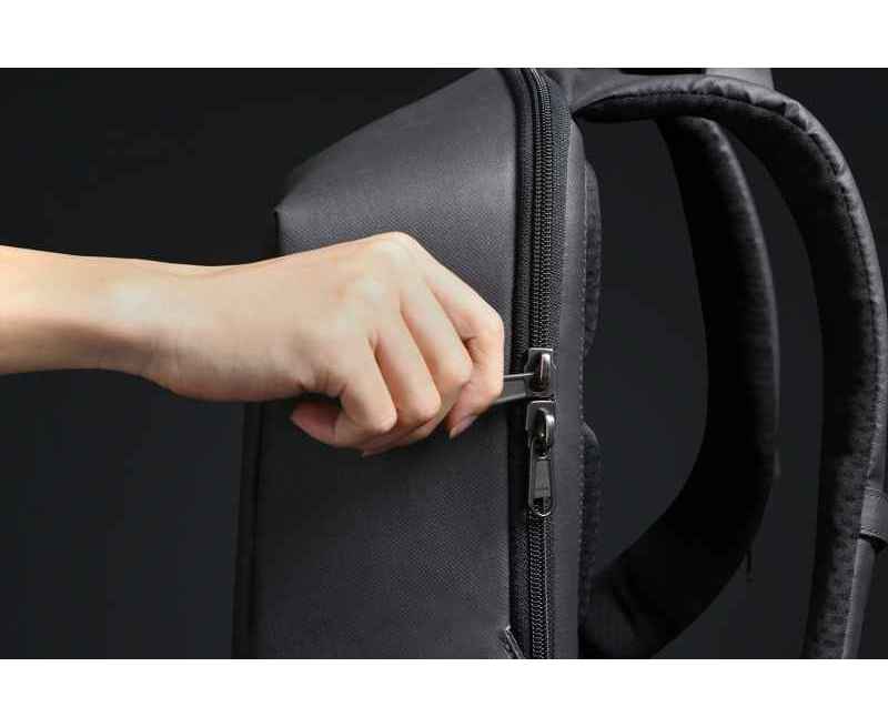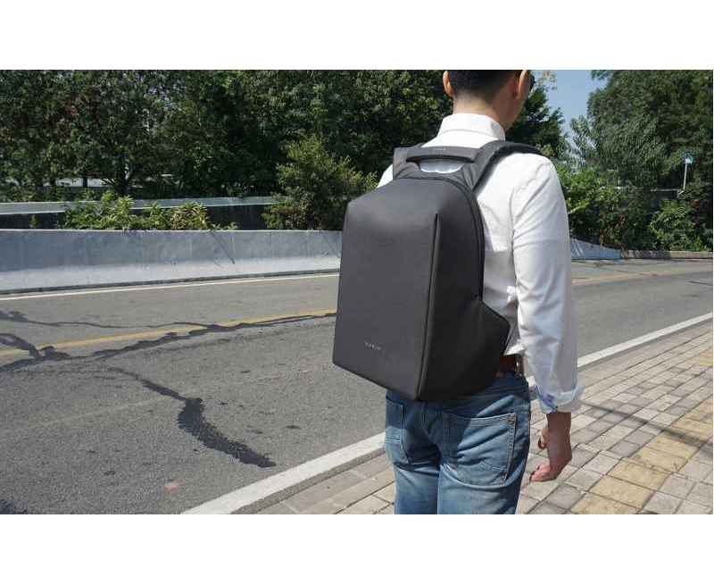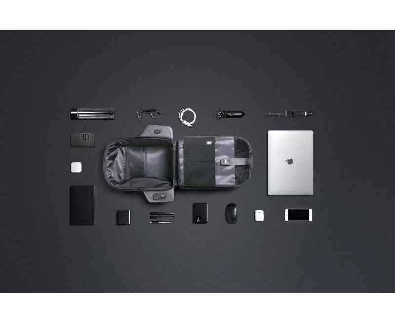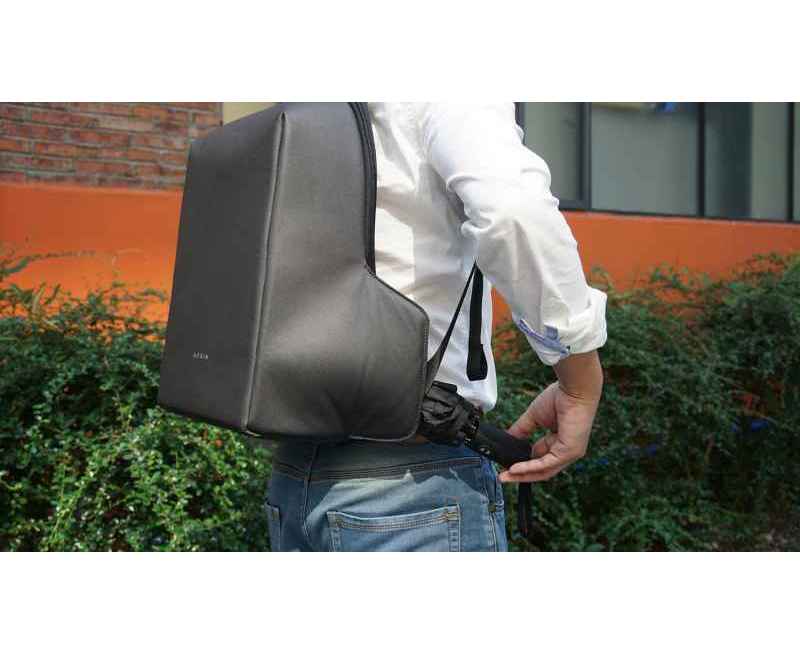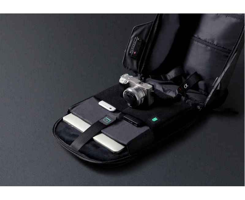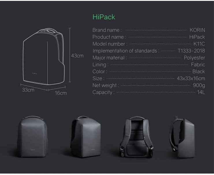 Легкий компактный городской рюкзак HiPack черного цвета, обладатель премии Good Design Award 2019. Размер рюкзака 43х33х16 см, объем 14 л, вес 900 гр. Сделан из высокопрочного устойчивого к порезам и трению водоотталкивающего многослойного полиэстера, не требующего специального ухода. При необходимости его достаточно протереть влажной салфеткой. Конструкция достаточно жесткая, не деформируется. Детально продуманная организация отделений позволяет грамотно распределить вес и снизить нагрузку на плечи. Самые тяжелые предметы располагаются ближе к спине, например, отделение размером 34х26х3 см для ноутбука диагональю до 15,6”. Благодаря плотной перегородке ноутбук надежно фиксируется и не перемещается при ходьбе. Специальная анатомическая конструкция снижает нагрузку на плечи и спину, и вес рюкзака воспринимается на 20-25% легче, чем при использовании стандартных моделей рюкзаков. Вентилируемая спинка с мягкими анатомическими вставками. Конструкция рюкзака позволяет открывать его под тремя разными углами: 30°, 90°, 180°. Если необходимо достать какие-либо мелочи, достаточно открыть под углом в 30° или 90°, а для того, чтобы аккуратно уложить в рюкзак много различных предметов, просто положите его и раскройте на 180°. Дополнительно основное отделение оснащено тремя открытыми карманами под мелочи, двумя карманами 22х16 см и 22х13 см на молниях и двумя карманами 12х16 см, в один из которых можно поместить powerbank, т к в него приходит USB-кабель, который соединен с портом на внешней стороне рюкзака для легкого подключения к смартфону. Молнии YKK основного отделения рюкзака HiPack фиксируются с помощью кодового замка TSA007 с функцией таможенного досмотра, который скрыт на внутренней стороне клапана бокового отделения, и расстегнуть его без вашего ведома невозможно. Это боковое отделение является водонепроницаемым и идеально подходит для того, чтобы положить в него зонт или бутылку с водой. Карман закрывается магнитной застежкой и легко доступен для вас. На каждой лямке рюкзака есть по одному easy access карману для карточек, проездных, документов и прочих мелочей размером 6х10 см. Дополнительно на правой лямке есть петелька, за которую можно прицепить очки или проводные наушники. На спинке рюкзака есть внешний потайной карман размером 23х12 см на молнии. Также на спинке находится специальная лямка для крепления рюкзака на выдвижную ручку чемодана. Сверху расположена мягкая ручка, за которую при необходимости удобно нести рюкзак в руках.