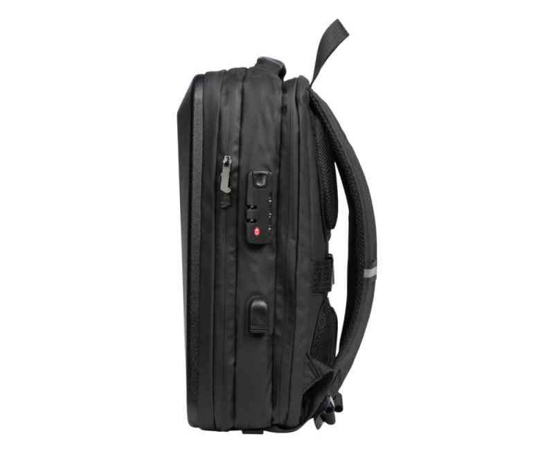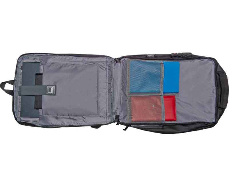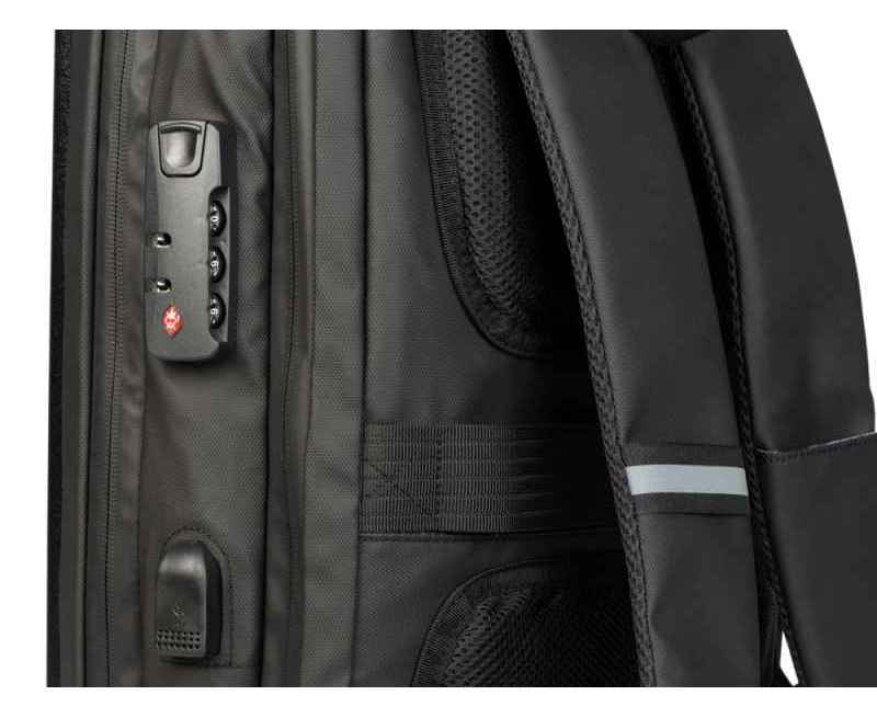 Водостойкий бизнес-рюкзак с пластиковой панелью спереди выглядит стильно и обеспечивает бережное хранение ваших личных вещей. Подходит для передвижений по городу и деловых поездок. 2 вместительных отделения позволяют разместить все необходимое: большое отделение для одежды с фиксирующими ремнями и органайзером, меньшее отделение с карманами для ноутбука и планшета и сетчатым органайзером. Несанкционированный доступ к содержимому вашего рюкзака будет затруднён благодаря кодовому замку и прочной пластиковой панели спереди. В рюкзаке предусмотрено много дополнительных удобств для использования:
