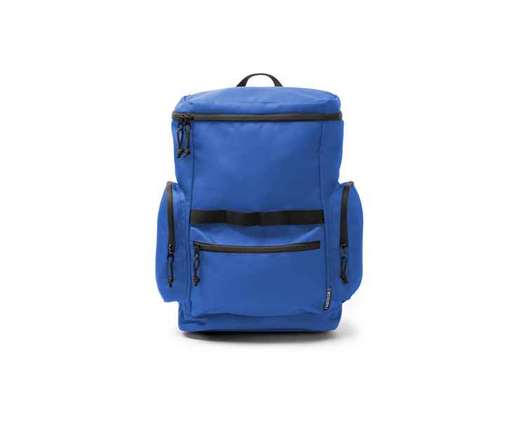 Рюкзак изготовлен из переработанного ПЭТ плотностью 600D с верхним отверстием. Имеет внешние боковые и передние карманы на молнии с черными язычками. Предусмотрены различные точки крепления для различных аксессуаров. Внутри имеется эластичное отделение для переноски устройств размером до 30 см. Мягкая спинка и ручки для большего комфорта.