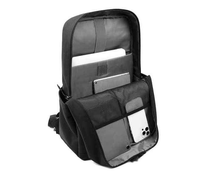 Внутри заднего отделения уплотнённый карман для ноутбука 17 дюймов с клапаном-резинкой на велькро и карман-органайзер из сетки для аксессуаров.