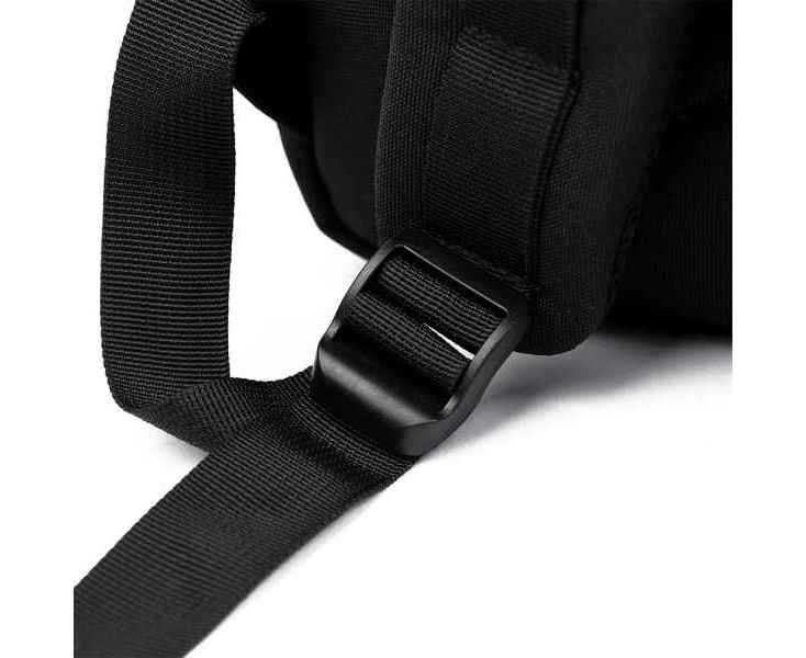 Одно большое отделение закрывается на молнию со скрытым звеном, второе отделение имеет открытый вход сверху и оба они затягиваются сверху фиксатором-стяжкой на защёлке.