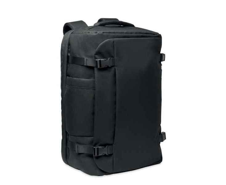 Большой дорожный рюкзак для ноутбука 17 дюймов из полиэстера 600D RPET. Имеет несколько отделений, в том числе основное для одежды и два с мягкой подкладкой для ноутбука и планшета. Мягкая спинка, плечевой ремень, ручка для переноски в руке.
