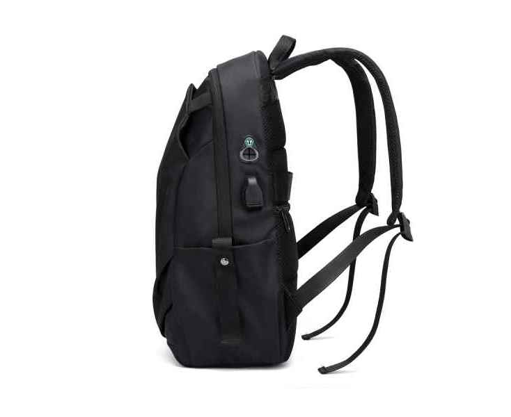Сбоку два небольших объёмных открытых кармана закрывающиеся тесьмами на магнитных кнопках, накладка с прорезью для наушников и USB-разъем с проводом для подключения внешнего аккумулятора который при необходимости можно спрятать под небольшой молнией внутри.