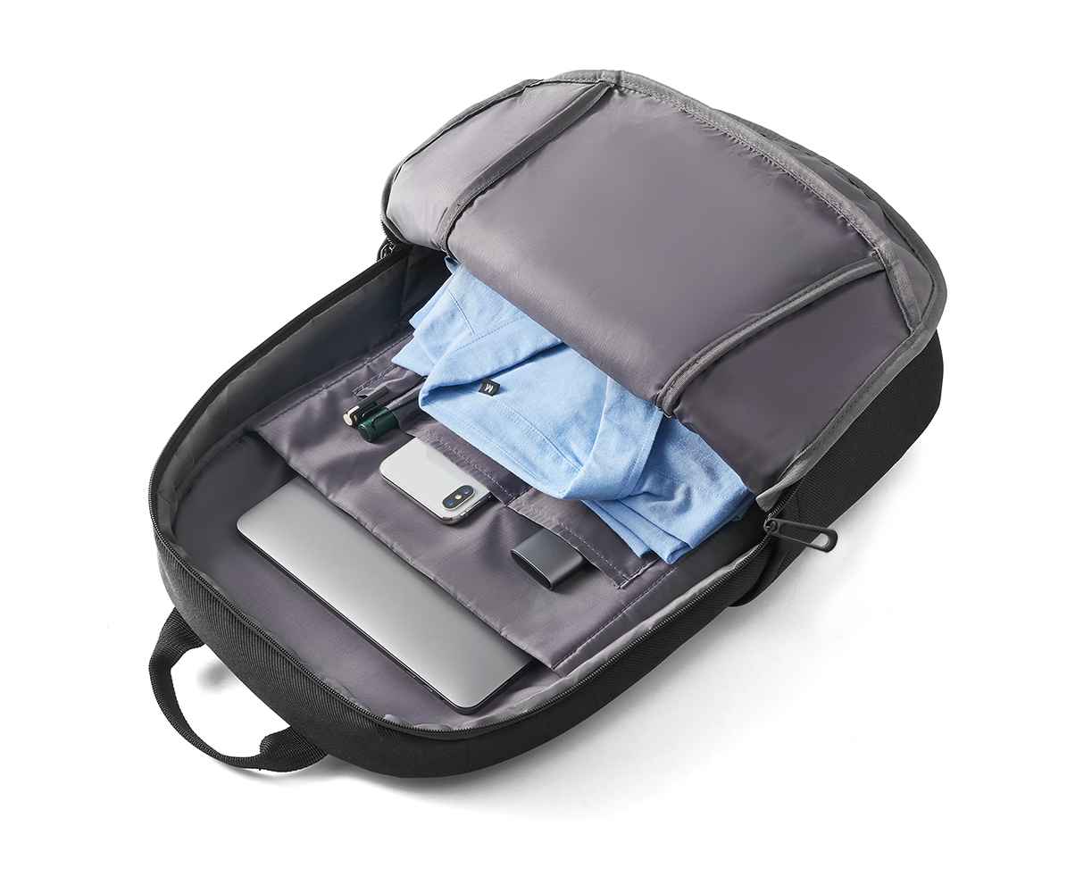 Внутри уплотненный карман для ноутбука 17 дюймов и карман-органайзер для мелких аксессуаров.
