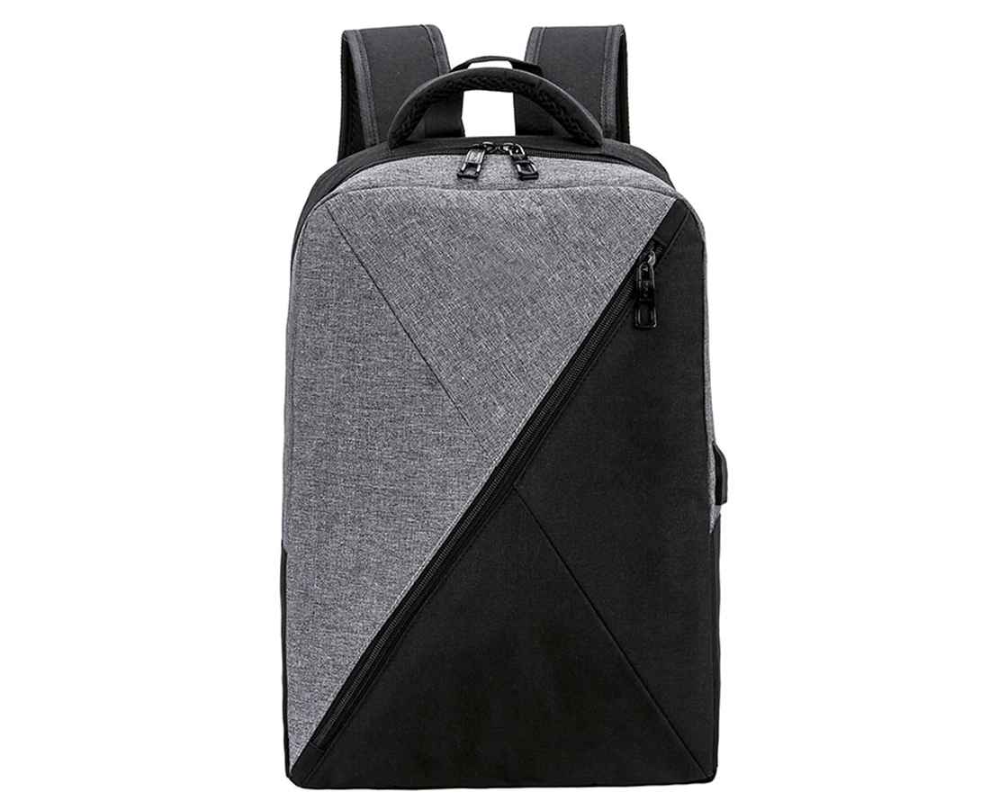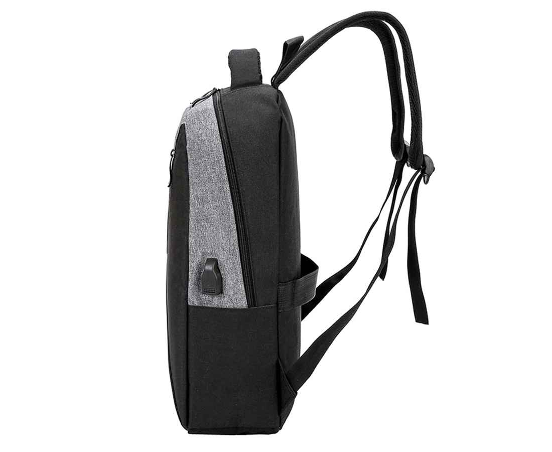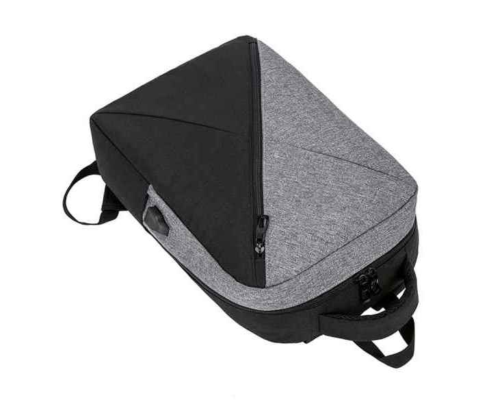 На передней стенке большой диагональный карман на молнии с открытым карманом внутри. Сбоку два открытых кармана и USB-разъем с проводом для подключения внешнего аккумулятора.