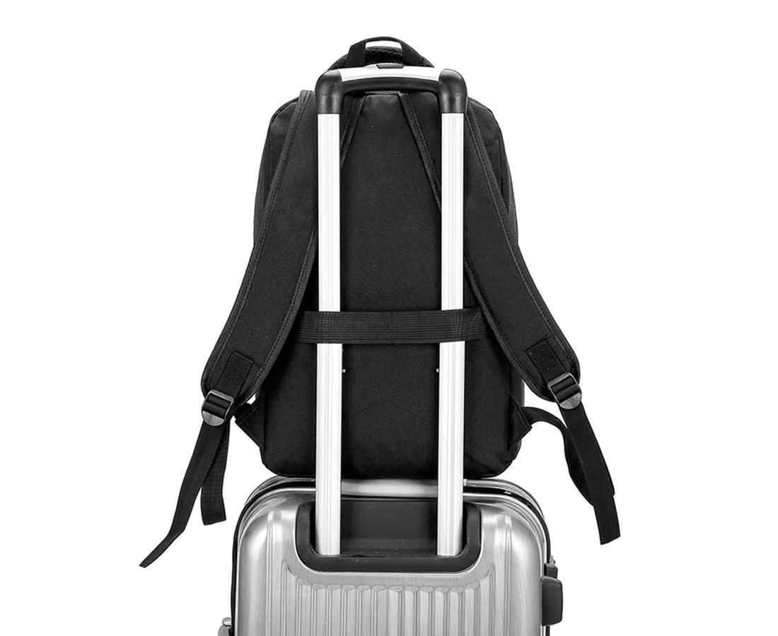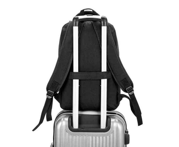 Специальная накладка для чемодана на задней стенке делает этот рюкзак незаменимым спутником для путешествий.