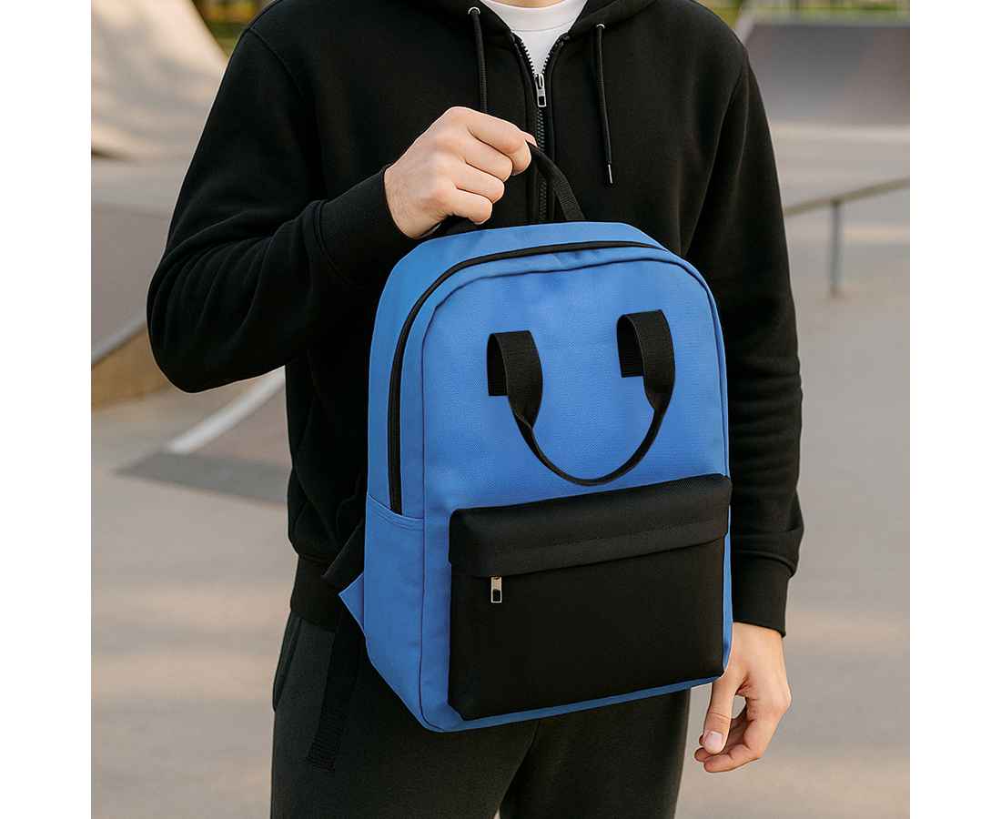 Одно основное отделение и объемный передний карман закрываются на скрытые молнии, что предотвращает попадание внутрь дождя и снега. Две короткие ручки и уплотнённые регулируемые по длине плечевые ремни. Уплотнённая задняя стенка.