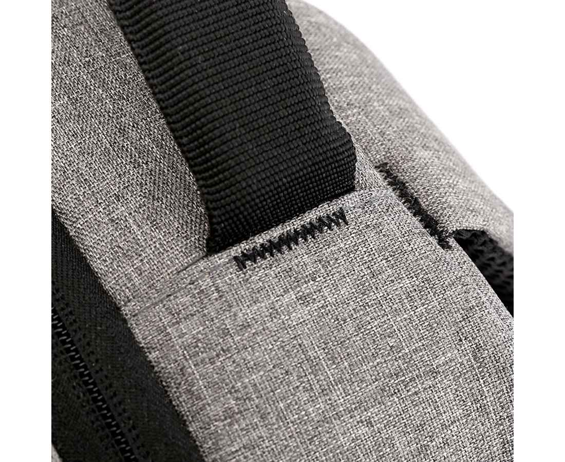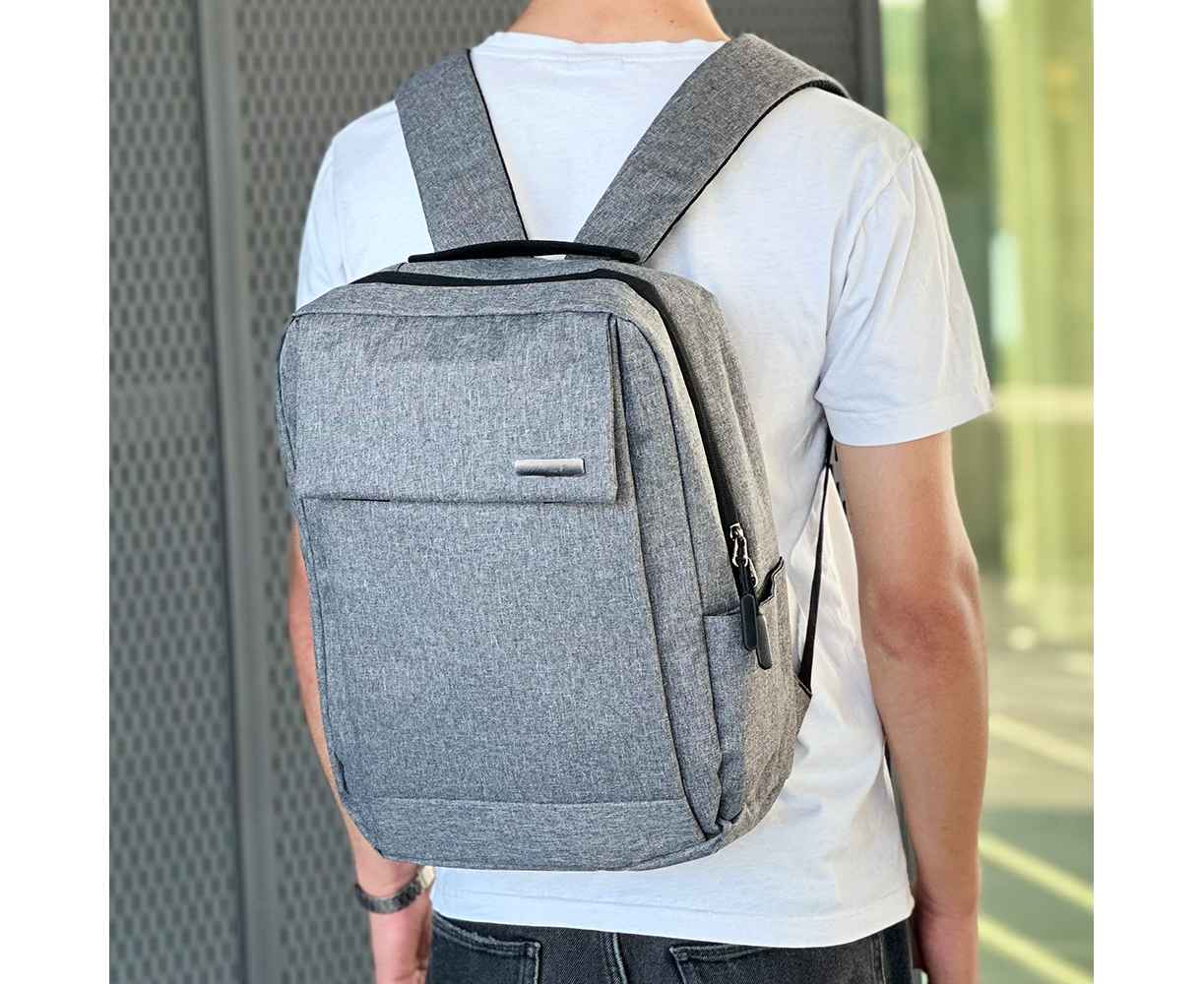 Одно большое отделение закрывается молнией со скрытым звеном. Внутри большой уплотненный карман для ноутбука 15,6 дюймов с клапаном-резинкой на велькро и карман-органайзер для мелких аксессуаров. На передней стенке большой карман с клапаном на велькро. Сбоку открытый карман и USB-разъем с проводом для подключения внешнего аккумулятора. Уплотнённая короткая ручка для дополнительного комфорта рук. Уплотнённые плечевые ремни регулируются по длине.