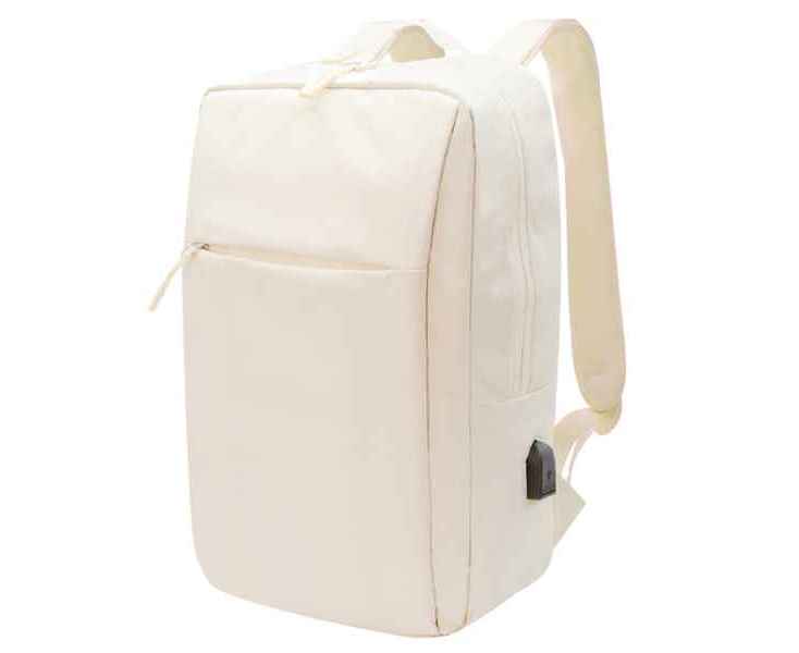 Одно большое отделение закрывается молнией со скрытым звеном. Внутри большой уплотненный карман для ноутбука 15,6 дюймов с клапаном на велькро и карман-органайзер для мелких аксессуаров. На передней стенке два больших скрытых кармана на молнии, боковой открытый карман и USB-разъем с проводом для подключения внешнего аккумулятора. Уплотнённая короткая ручка для дополнительного комфорта рук. Уплотнённые плечевые ремни регулируются по длине.