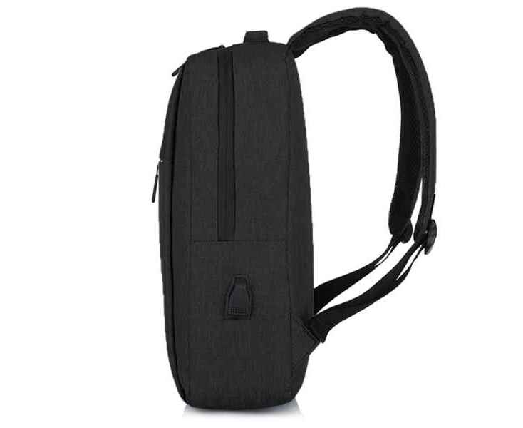 Одно большое отделение закрывается молнией со скрытым звеном. Внутри большой уплотненный карман для ноутбука 15,6 дюймов с клапаном на велькро и карман-органайзер для мелких аксессуаров. На передней стенке два больших скрытых кармана на молнии, боковой открытый карман и USB-разъем с проводом для подключения внешнего аккумулятора. Уплотнённая короткая ручка для дополнительного комфорта рук. Уплотнённые плечевые ремни регулируются по длине.