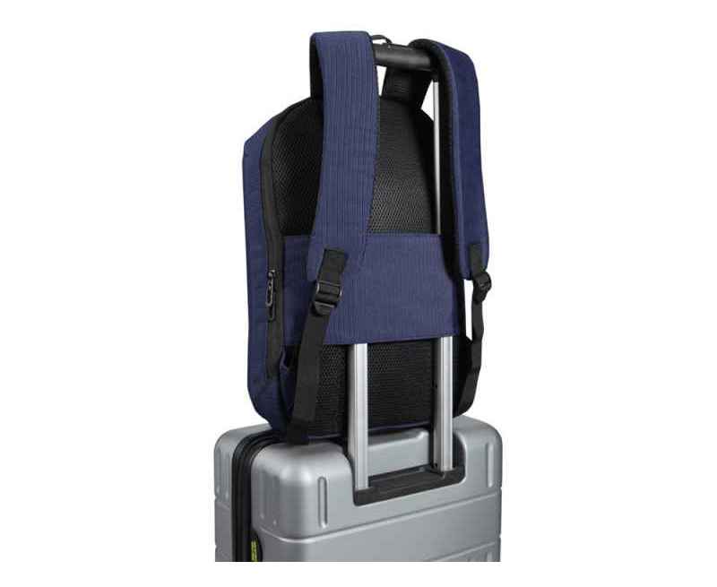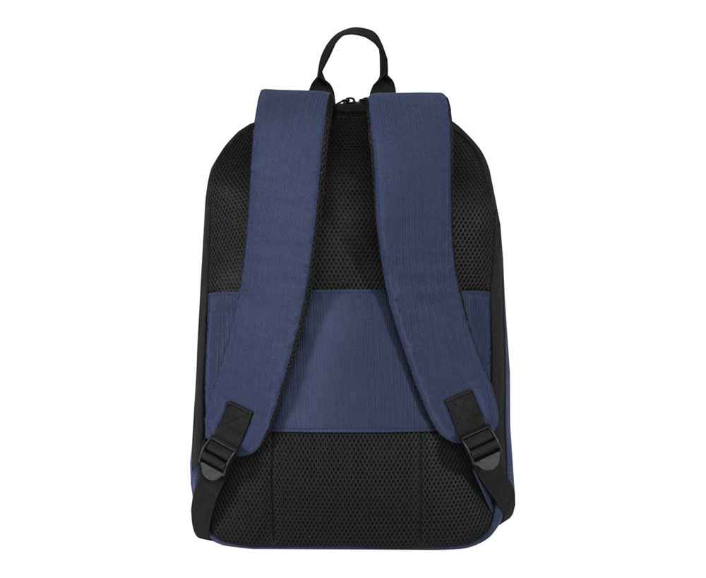 Рюкзак Luma для ноутбука 15 дюймов с защитой от кражи, изготовленный из переработанного жаккардового полиэстера с подкладкой из переработанного ПЭТ-пластика в тон, сочетает в себе умную защиту и элегантный стиль для тех, кто всегда в движении. Функции защиты от кражи включают запирающиеся молнии (замок не входит в комплект) и скрытый задний карман, который также можно использовать как ручку для крепления к чемодану. Ткань водоотталкивающая, что защитит ваши вещи от небольшого дождя. Внутри вы найдете отделение для ноутбука с диагональю экрана до 15 дюймов, имеющее мягкую подкладку для устройств, специальный карман для планшета, органайзер для ручек и организованное хранилище для аккуратного хранения самых необходимых вещей. Конструкция также включает мягкие плечевые ремни, дышащую сетчатую спинку и металлические пластины спереди. Независимо от того, едете ли вы на велосипеде на работу, проезжаете через оживленный аэропорт или направляетесь на учебу, рюкзак Luma обеспечит вам комфорт и стиль на весь день. Полиэстер из переработки, сертифицированный GRS.