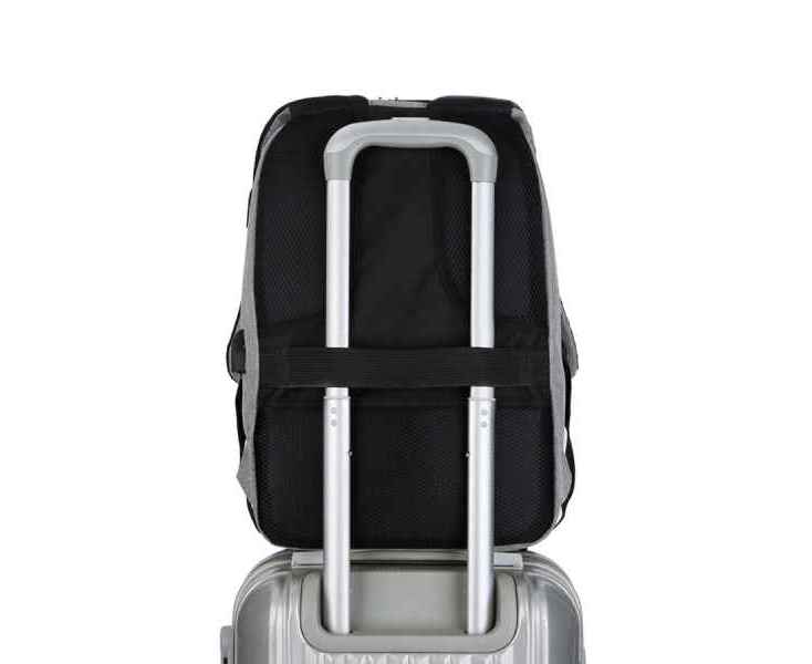 Специальная накладка для чемодана на задней стенке делает этот рюкзак незаменимым спутником для путешествий.