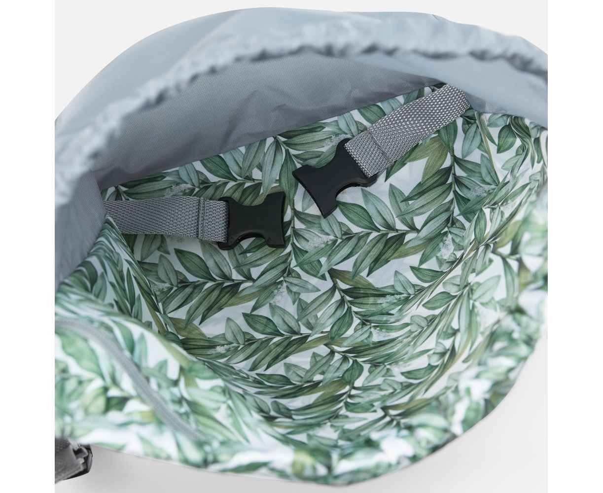 В стоимость входят запечатка полотна бесшовным паттерном методом сублимации для передней панели, раскрой и пошив изделия. Задняя панель, молния и стропы — серого цвета.