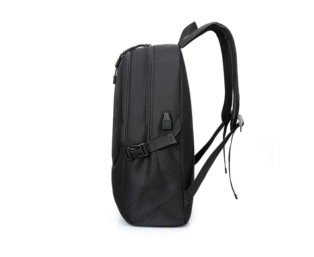 Сбоку USB-разъем с проводом для подключения внешнего аккумулятора, который при необходимости можно спрятать под небольшой молнией внутри и два объёмных кармана с вентилируемой сеткой и регулируемыми тесьмами-стяжками на защёлках-фастексах которые существенно расширяют функционал и вместимость рюкзака.