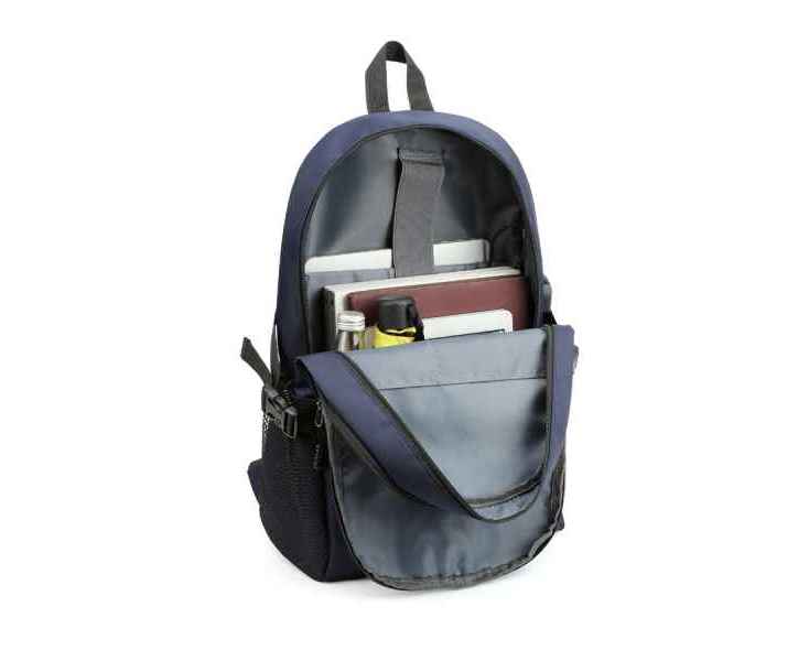 Сбоку USB-разъем с проводом для подключения внешнего аккумулятора, который при необходимости можно спрятать под небольшой молнией внутри и два объёмных кармана с вентилируемой сеткой и регулируемыми тесьмами-стяжками на защёлках-фастексах которые существенно расширяют функционал и вместимость рюкзака.