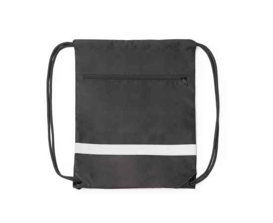 Рюкзак на кулиске регулируемый из RPET 300D. Передний карман с застежкой-молнией и горизонтальной светоотражающей полосой, которая обеспечивает большую видимость. Кроме того, его углы усилены искусственной кожей.