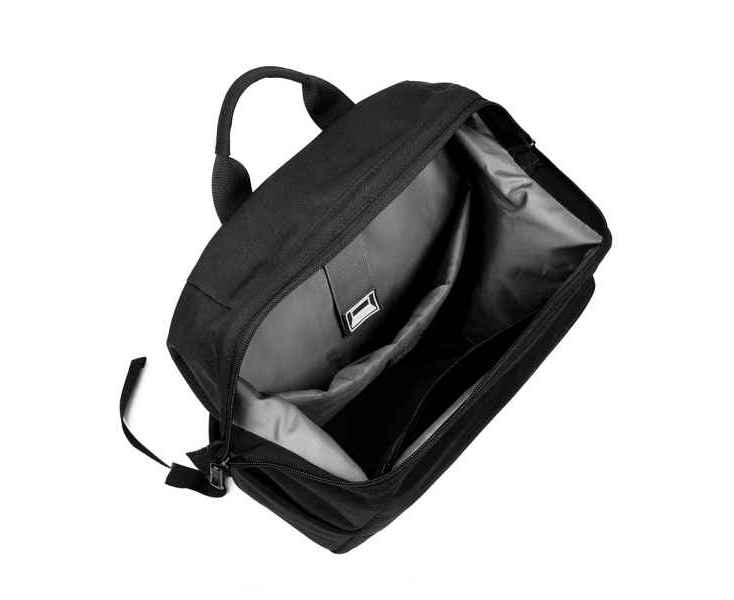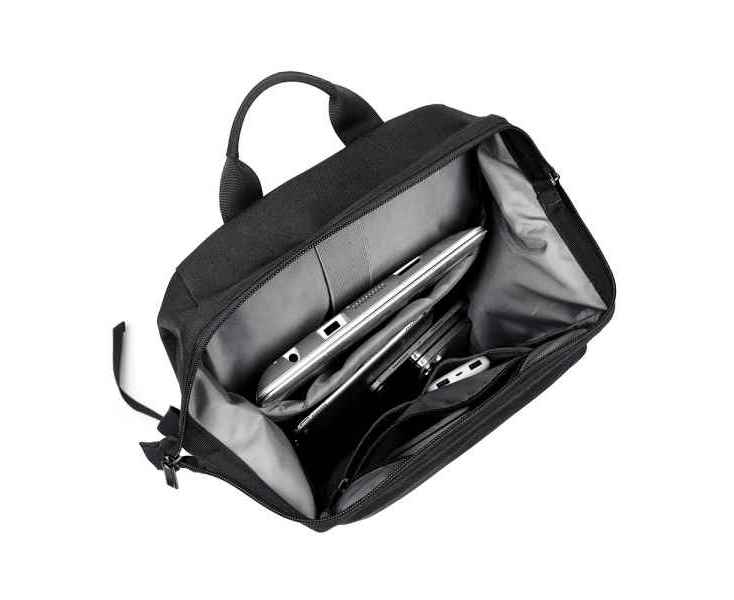 Его особенности - жесткие фиксаторы верхнего края придающие форму 'а-ля саквояж', элегантный внешний вид и обеспечивающие отличный доступ в рюкзак. Основное отделение закрывается на молнию с двумя пуллерами.