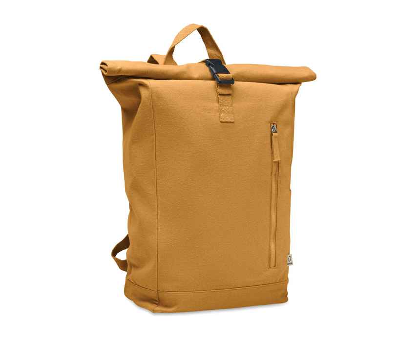 Рюкзак с застежкой Rolltop из переработанного хлопка (80%) и переработанного полиэстера (20%) плотностью 390 гр/м². Передний карман на молнии.
