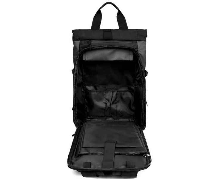 Два боковых кармана значительно расширяют функционал: один на водонепроницаемой молнии со скрытым звеном с карманом-сеткой для мелких гаджетов внутри. Второй, открытый с возможностью увеличения объёма с помощью молнии позволит разместить бутылку, зонт и всё что необходимо для быстрого доступа