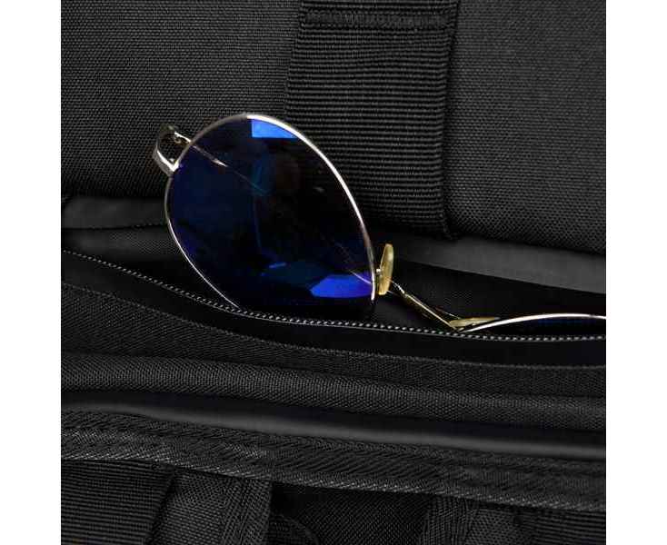 Задняя стенка усилена пластиковой прокладкой, а специальная накладка для чемодана и скрытый под ней карман на молнии делают этот рюкзак незаменимым спутником для путешествий.