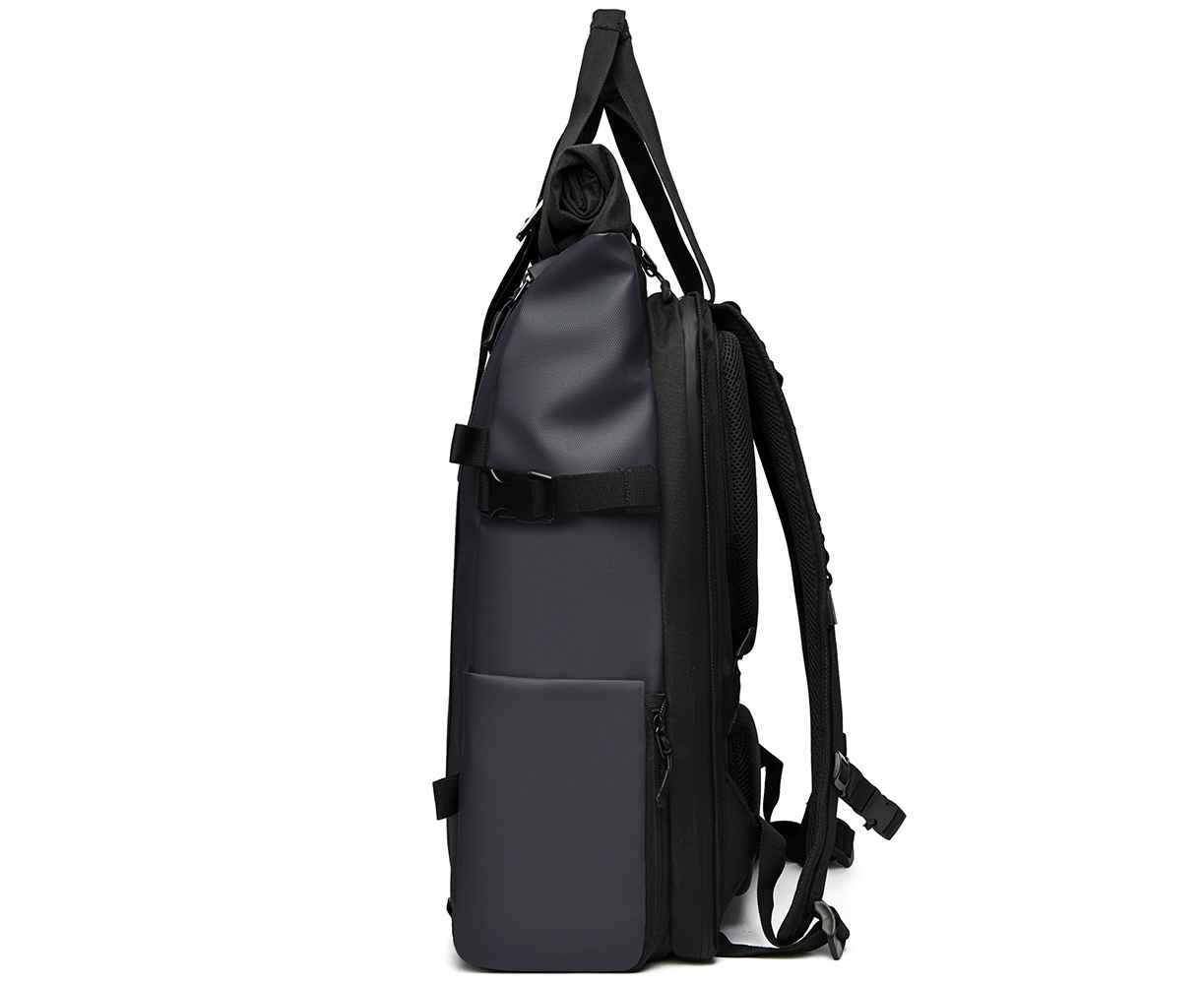 Два боковых кармана значительно расширяют функционал: один на водонепроницаемой молнии со скрытым звеном с карманом-сеткой для мелких гаджетов внутри. Второй, открытый с возможностью увеличения объёма с помощью молнии позволит разместить бутылку, зонт и всё что необходимо для быстрого доступа