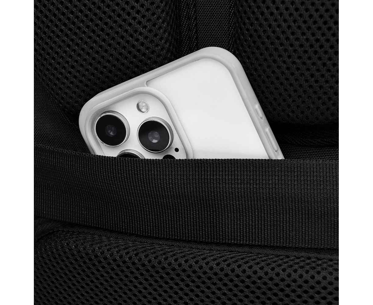 Двойное уплотнение анатомических накладок на задней стенке распределяет его вес и снижают нагрузку на позвоночник. Гигроскопичная вентилируемая трехслойная 3D-сетка на накладках задней стенки и подкладке плечевых ремней предотвращает скольжение и обеспечивает отличную вентиляцию и комфорт при контакте с кожей и одеждой.
