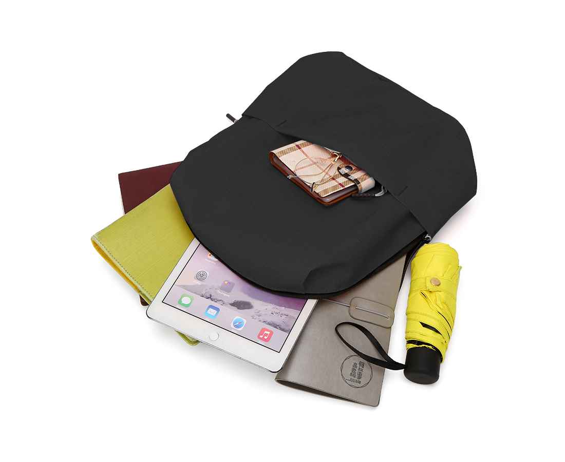 Одно основное отделение и скрытый передний карман закрываются на молнии, два боковых открытых кармана. Короткая ручка и уплотнённые регулируемые по длине плечевые ремни. Уплотнённая задняя стенка. Внутри открытый карман на задней стенке.