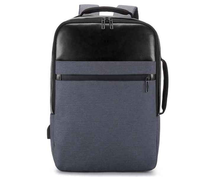 Верх рюкзака и часть передней стенки из высококачественной искусственной кожи надёжно защищают содержимое от попадания внутрь влаги. Два отделения закрываются на молнии со скрытым звеном.