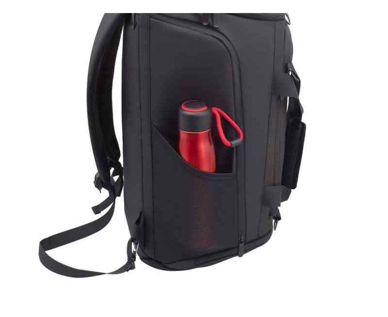 Спортивная сумка-рюкзак 2-в-1 подходит для походов в спортзал и деловых поездок. Чтобы превратить рюкзак в сумку, надо отстегнуть лямки внизу и вложить их в карман на молнии на спинке. В трансформере предусмотрено все для удобства использования: