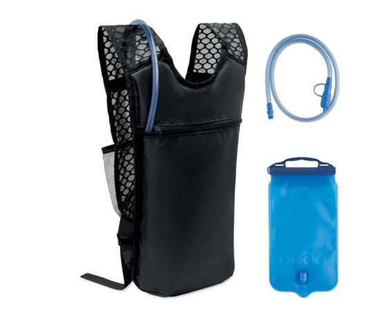 Спортивный рюкзак из водоотталкивающего полиуретана 420D с сетчатыми деталями. В комплекте контейнер для воды из EVA объемом 1500 мл с ПВХ-трубкой и замком. Легкий, прочный и идеально подходит для активного отдыха.