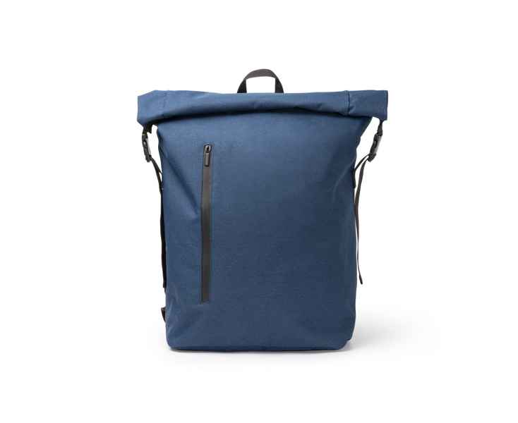 Рюкзак из RPET 300D внутри из ПВХ, отталкивающий жидкость. Эта функция дополняется водонепроницаемыми застежками-молниями. Основное отделение с расширяющимся отверстием сверху, застежкой-липучкой и регулируемыми боковыми пряжками. Внутри он оснащен карманом для ноутбука до 15' и двумя меньшими карманами для других предметов. Большой внешний карман на застежке-молнии. Ремни со светоотражающими деталями и задняя панель имеют мягкую подкладку. Включает ремешок для тележки, что делает его универсальным и удобным вариантом.