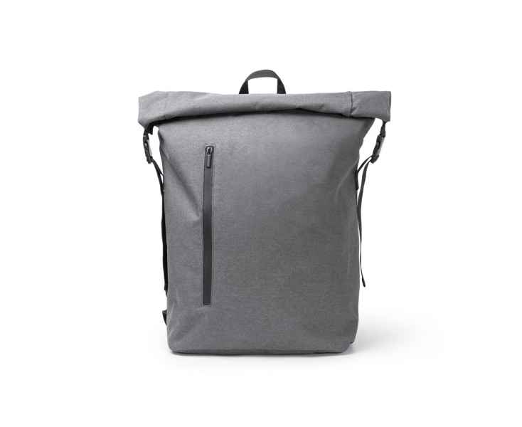 Рюкзак из RPET 300D внутри из ПВХ, отталкивающий жидкость. Эта функция дополняется водонепроницаемыми застежками-молниями. Основное отделение с расширяющимся отверстием сверху, застежкой-липучкой и регулируемыми боковыми пряжками. Внутри он оснащен карманом для ноутбука до 15' и двумя меньшими карманами для других предметов. Большой внешний карман на застежке-молнии. Ремни со светоотражающими деталями и задняя панель имеют мягкую подкладку. Включает ремешок для тележки, что делает его универсальным и удобным вариантом.