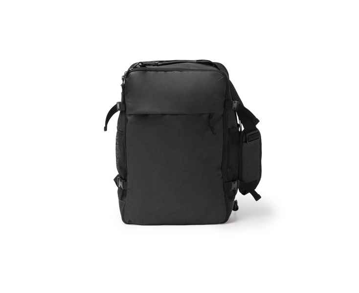 Рюкзак-сумка из 600D RPET, большой объём и открыв на 180 градусов. Большое основное отделение с небольшими внутренними разделителями разных размеров для организации и хранения вещей. Регулируемые пряжки по бокам позволяют фиксировать и регулировать основное отделение. Большой наружный карман на застежке-молнии, два боковых кармана из сетчатой ткани с эластичной регулировкой для переноски бутылок, а также антикражный карман на задней части рюкзака, который также служит местом для хранения плечевых ремней. Рюкзак можно носить и как сумку, отсоединив оплечевые ремни и используя ручки и съёмный регулируемый плечевой ремень. Мягкие ручки и спинка для дополнительного комфорта.