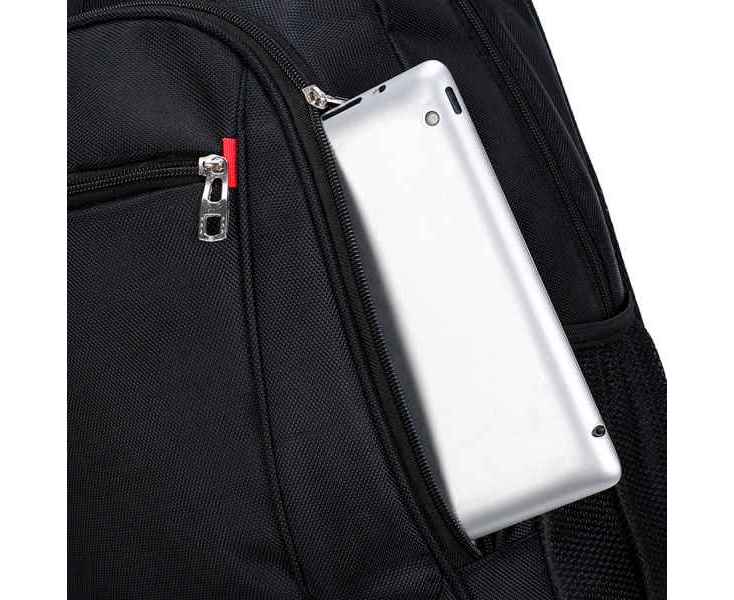 Одно большое отделение закрываетсяна молнию. Внутри большой открытый карман, где поместится ноутбук 15.6 дюймов.