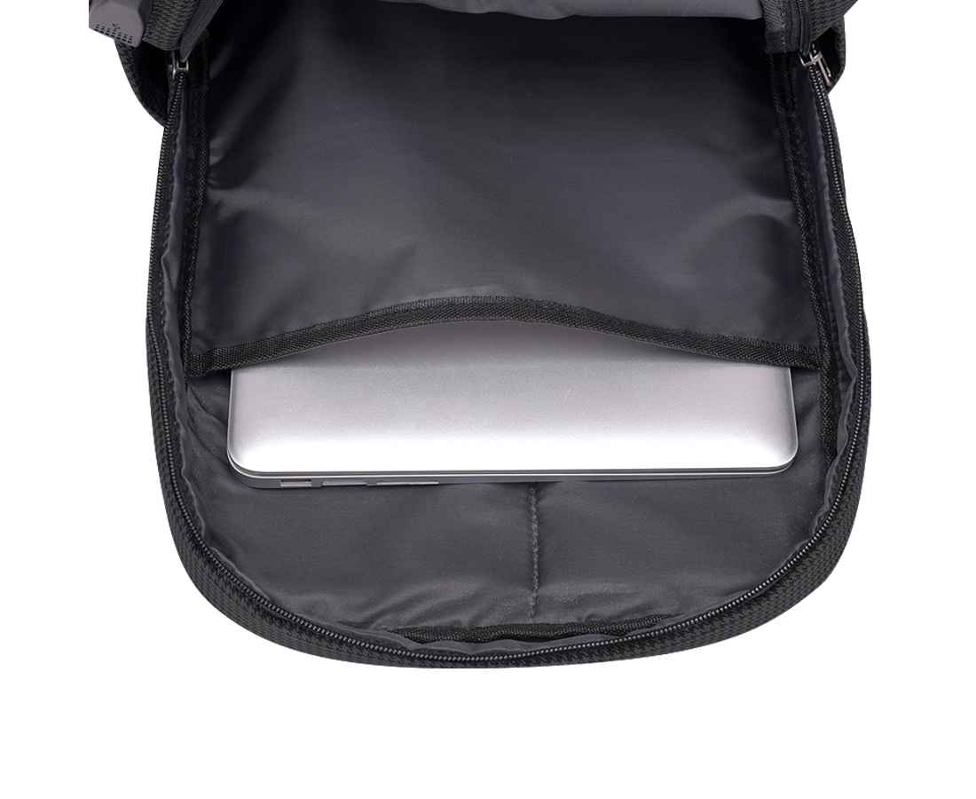 Одно большое отделение закрывается на молнию. Внутри большой открытый карман, где поместится ноутбук 15.6 дюймов.