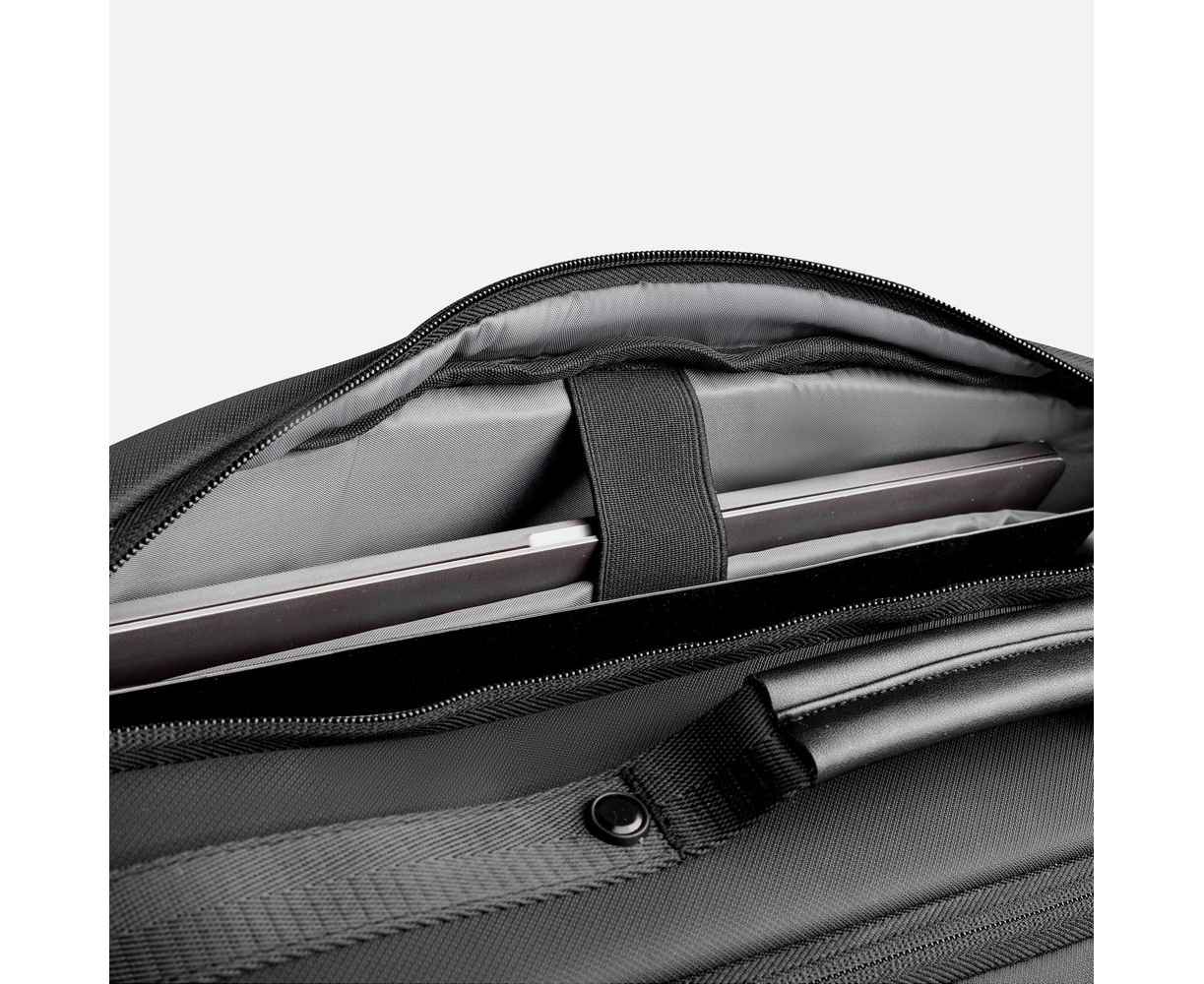 - Два отделения на молнии: первое — для документов с усиленным карманом под ноутбук, второе — объемное отделение для вещей с панелью‑органайзером и внутренним карманом на молнии