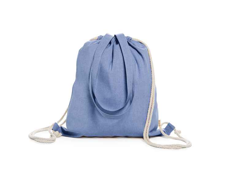 Сумка-рюкзак на завязках из 100% переработанного хлопка в крапинку, с подходящими ручками длиной 70 см и завязками натурального цвета. 140 г/м2.