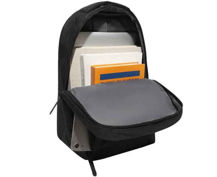 Одно большое отделение закрывается на молнию. Внутри большой уплотненный карман для ноутбука 15,6 дюймов с клапаном-резинкой на велькро и карман для планшета до 10 дюймов.