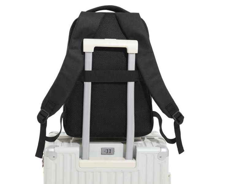 Специальная накладка для чемодана на задней стенке делает этот рюкзак незаменимым спутником для путешествий.