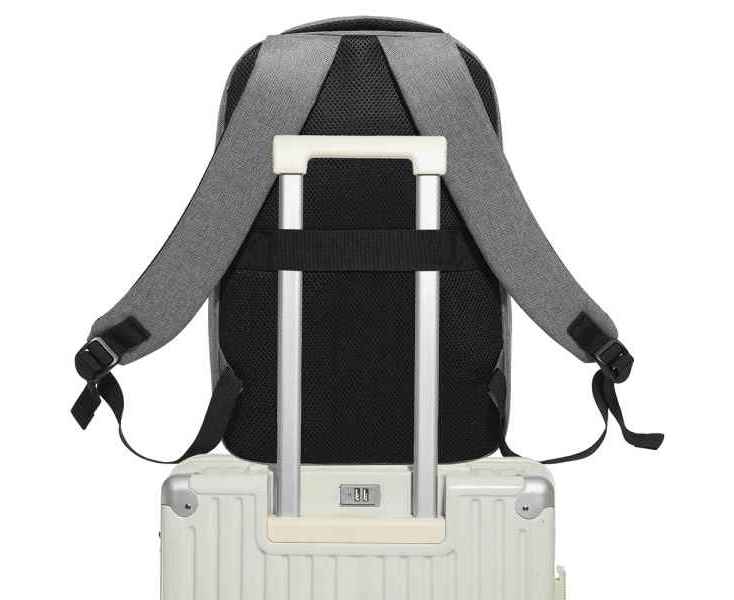 Специальная накладка для чемодана на задней стенке делает этот рюкзак незаменимым спутником для путешествий.