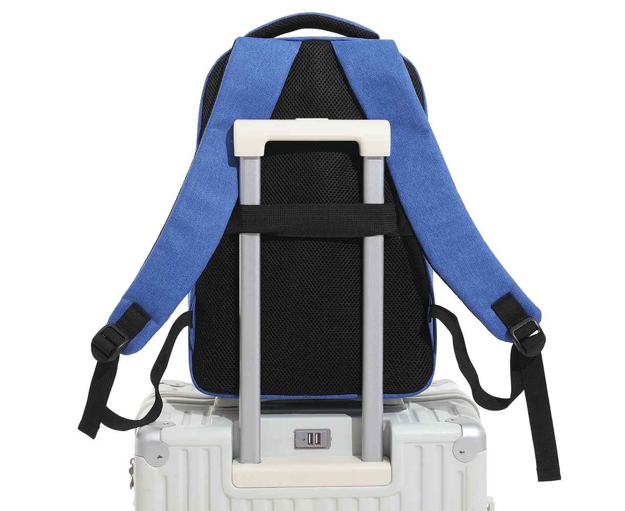 Специальная накладка для чемодана на задней стенке делает этот рюкзак незаменимым спутником для путешествий.