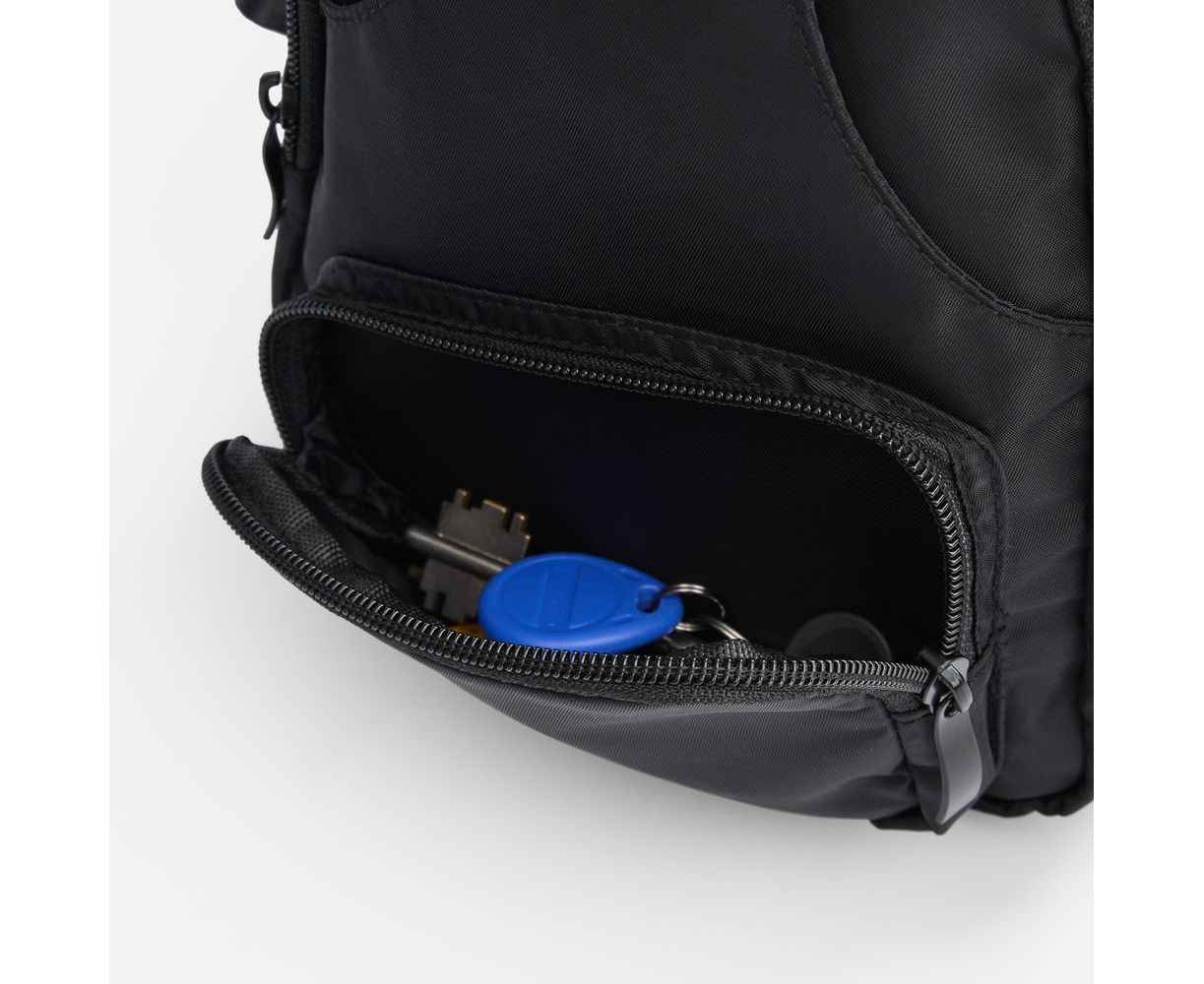 Рюкзак изготовлен из прочного и легкого нейлона, так что обладает высокой стойкостью к износу, а продуманная организация внутреннего пространства позволит удобно разместить телефон, кошелек, ключи и документы. Регулируемый ремень обеспечивает идеальную посадку, потайной карман на задней части надежно защитит самое ценное.