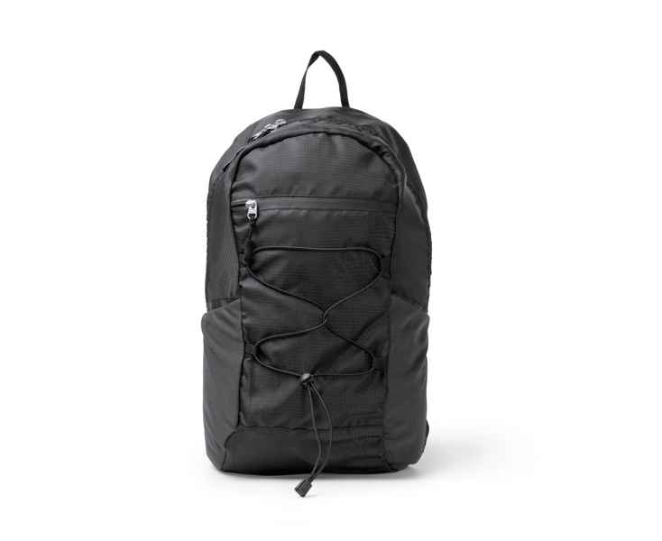 Спортивный рюкзак из рипстопа 420D RPET. Основное отделение с двойной застежкой-молнией и внутренним карманом. Два внешних сетчатых отделения и внешнее переднее отделение с водонепроницаемой застежкой-молнией и эластичными шнурами. Оснащен внутренним мешочком с карабином для хранения. С ручками из сетчатого материала.