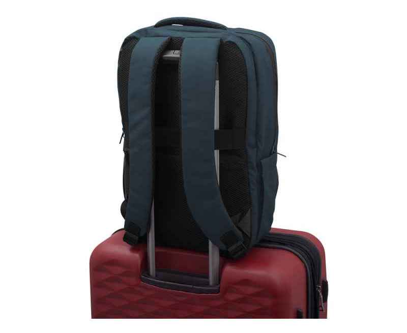Непромокаемый бизнес рюкзак с двумя вместительными отделениями и карманом на молнии спереди. В одном отделении расположены карман для ноутбука и планшета, в другом органайзер и много пространства для одежды и других вещей на случай деловой поездки. На сетчатой спинке расположен потайной кармана на молнии для документов и личных вещей и ремень для крепления на ручку чемодана. Сверху удобная мягкая ручка для переноски. Лямки регулируются по длине.