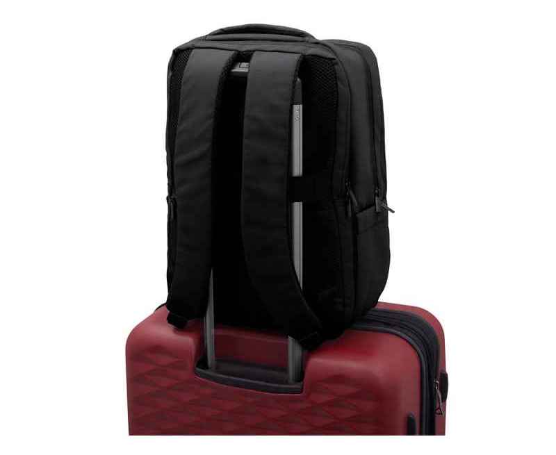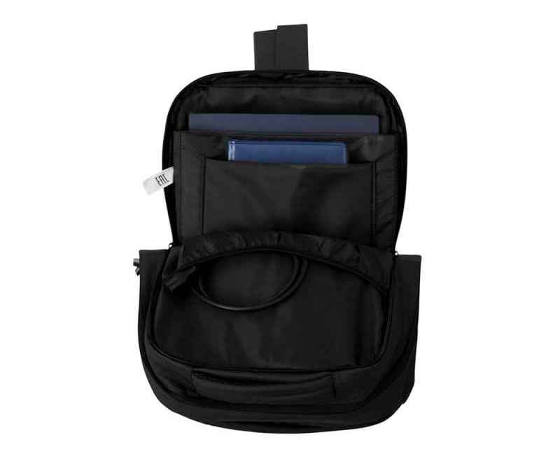 Непромокаемый бизнес рюкзак с двумя вместительными отделениями и карманом на молнии спереди. В одном отделении расположены карман для ноутбука и планшета, в другом органайзер и много пространства для одежды и других вещей на случай деловой поездки. На сетчатой спинке расположен потайной кармана на молнии для документов и личных вещей и ремень для крепления на ручку чемодана. Сверху удобная мягкая ручка для переноски. Лямки регулируются по длине.