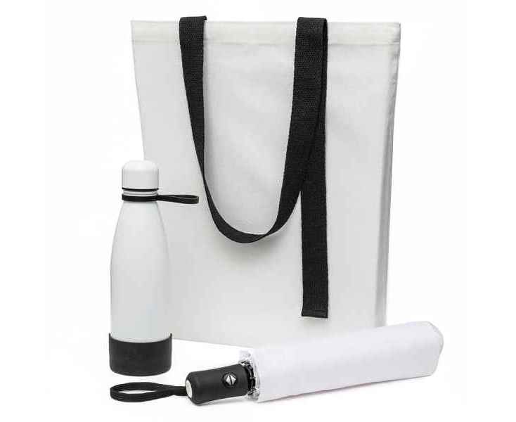 В него входят элегантный шоппер, удобная термокружка и надежный зонт, которые помогут вам быть готовым ко всему.