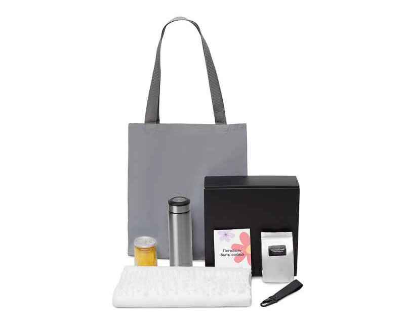 Подарочный набор Re:f. Walk — о прогулках, которые дарят тепло и удовольствие. Мягкий палантин согреет в прохладный день, а термос с ароматным чаем сделает любую паузу приятной и уютной. В шопере удобно носить с собой все необходимое, а манго добавляет сладкую нотку радости и солнца. Этот набор напоминает: даже обычная прогулка может стать временем для себя, наполненным комфортом и маленькими удовольствиями.