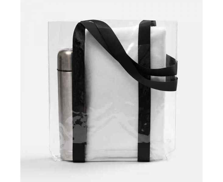 Прозрачные сумки никогда не выйдут из моды. А цветные ручки легко впишутся в брендбук и точно передадут настроение, которое хотелось бы транслировать.